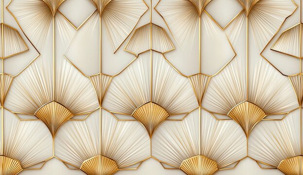 Gold leaf art deco wall panel, seamless pattern, interior design