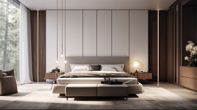 modern bedroom decor theme infused with art deco influences, characterized by geometric shapes and luxurious textures