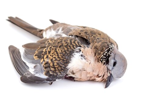 Dead bird on white background