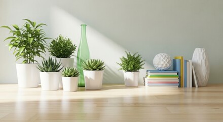 Indoor setting with decorative objects used as a backdrop for design and layout purposes