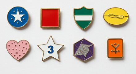 Colorful Enamel Pins Displayed in Geometric Arrangements