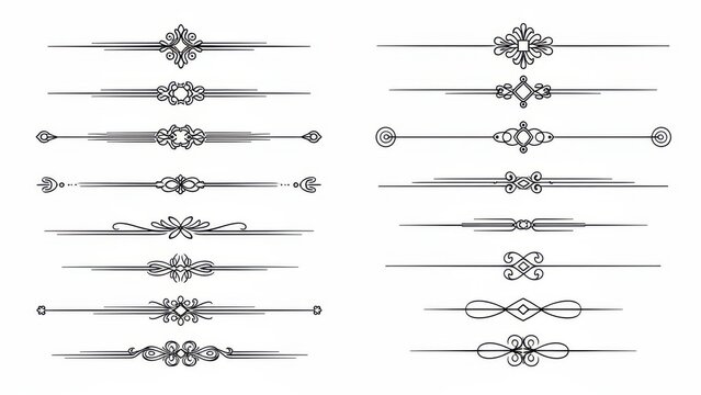 Ornate floral design elements black and white vintage style isolated on transparent background