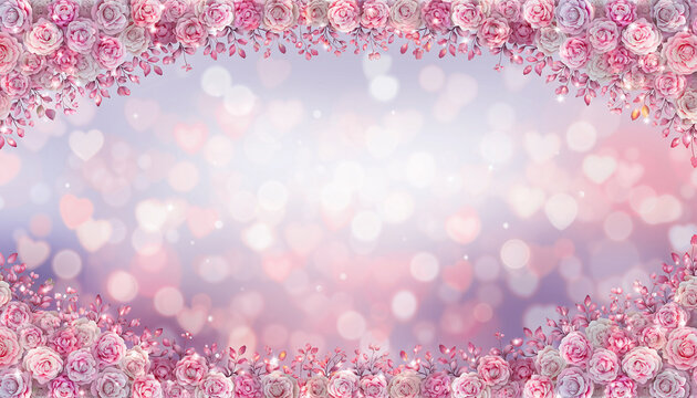 Romantic Valentine's Day background with soft decorative frame of pink and white rose petals
