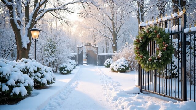 Enchanting winter wonderland with festive decorations