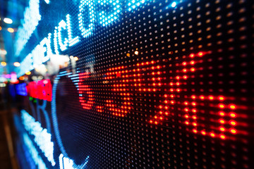 Led display with dynamic stock market tickers in corporate environment