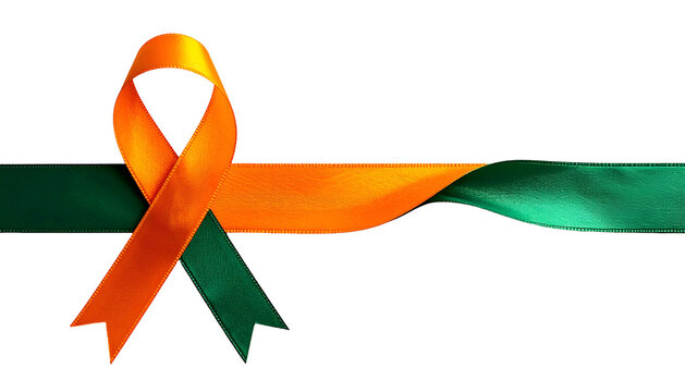 A vivid orange and green ribbon, a symbol of awareness, on a black background