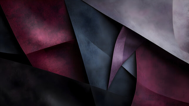 in shades of deep burgundy, charcoal, and navy, arranged in an abstract gothic-inspired composition