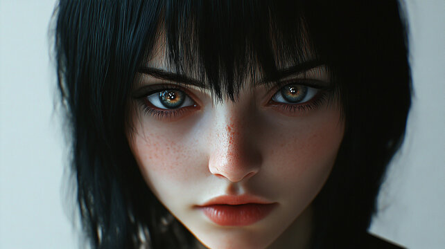 Portrait of a young woman with a tear-stained face, looking down with a reddened complexion and an expression of deep sorrow and sadness.