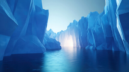 Illuminated Ice Cave with Blue Glow and Frozen Stalactites