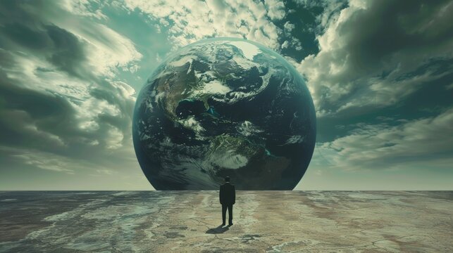 Symbolic portrayal of human condition in a desolate world, evoking deep contemplation