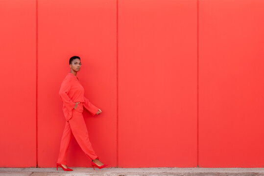 Abstract deep scarlet red color paint texture background wallpaper. Contemporary art brush stroke backdrop