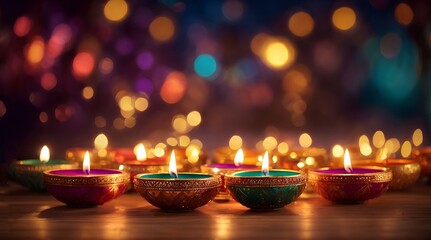 Diwali festival of lights tradition Diya oil lamps against dark background.