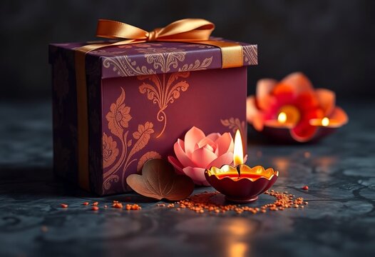 Traditional Diwali treats arranged for celebration, vibrant colors and decorative elements