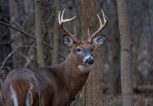 Whitetail deer buck walking in the woods