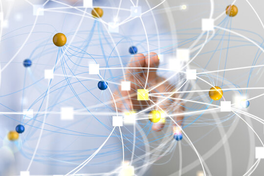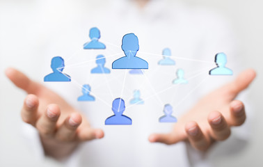 Futuristic digital network linked by user avatars in abstract cyberspace