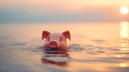 piggy bank partially submerged in water  symbolizing debt, bankruptcy, and financial loss