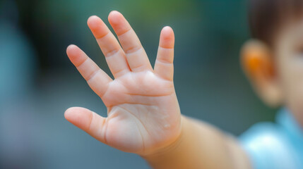A young blonde woman gestures 'stop' with her hand against a white isolated background, embodying authority and boundary setting.