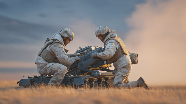 Soldiers Assembling Portable SAM System for Defense Readiness