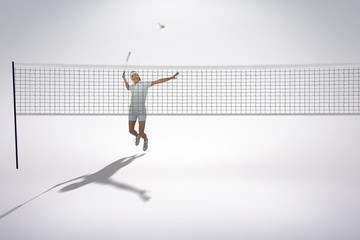 Composite image of badminton player playing badminton