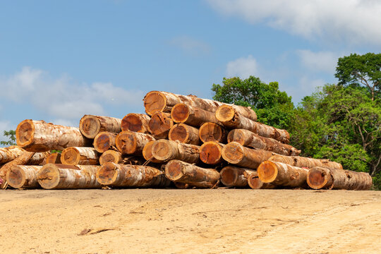 Sustainable forestry: timber log storage yard in the brazilian Amazon rainforest