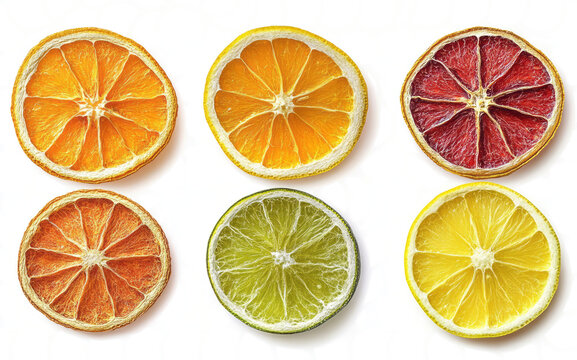 A narrow view of spiced and roasted orange slices spread on a marble slab.
