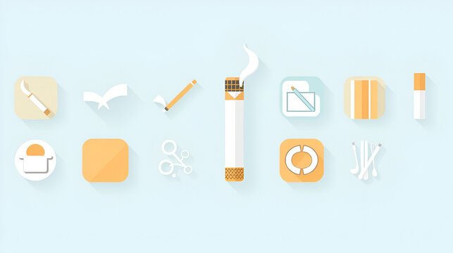 Cigarette square flat icons