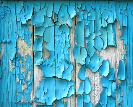 Detailed view of a wooden wall with chipped and peeling paint, showcasing the weathered texture of the surface