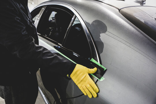 Executive hands erasing with rubber sits at office