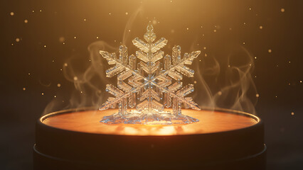 Glowing winter reed plumes shimmering with frost and falling snow in frozen meadow