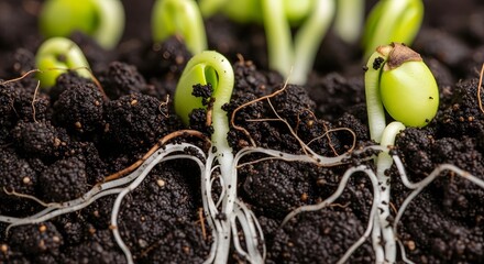 A seed sprouting through cracked concrete. the delicate tendril pushing through the harsh surface, emphasizing the power of resilience and rebirth
