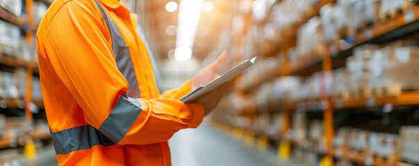 Supervisor managing distribution and delivery operations, highlighting efficiency and logistics control, field of dept deep odject, all cover focus text, for spacecopy
