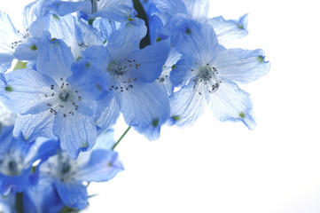 flowers of delphinium on a white background