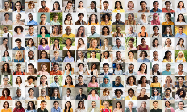 This portrait collage eloquently expresses diversity with a tapestry of happy men and women from different demographics