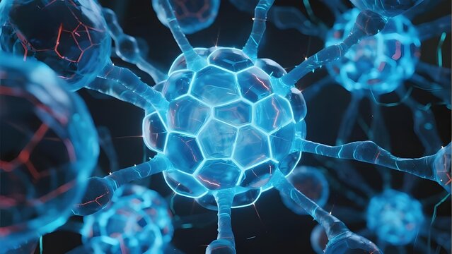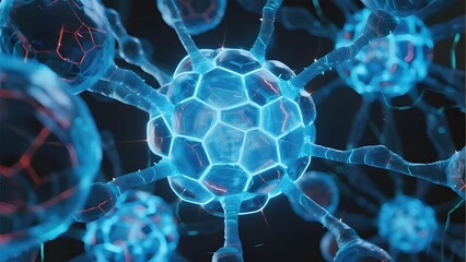 Glowing neural cell with dendritic projections in futuristic sci-fi style