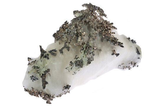 native silver and dyscrasite from Bouismas Mine, Morocco isolated on white background