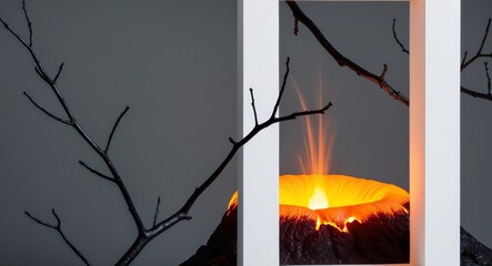 Glowing frosted glass orb with intricate ice-crystal patterns and warm amber backlight