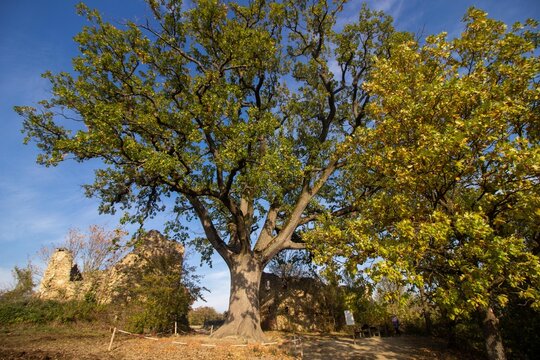 A stout tree over 30 meters high, often in old age with a massive trunk and a distinctive bark, which peels off in larger scales and resembles a sycamore tree.