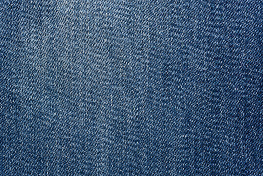 Stack of blue jeans denim and wood name plate. Jeans heap at wooden background texture