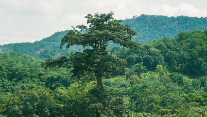 Aerial view of an area of dense amazon rainforest in Brazil, showing only the treetops.