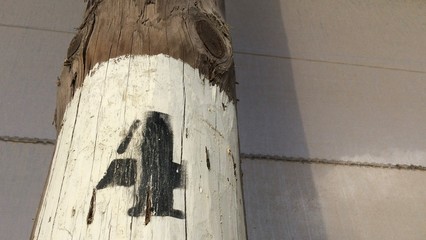 number four, black number four on a white background, number on a pole, dense mesh as a background