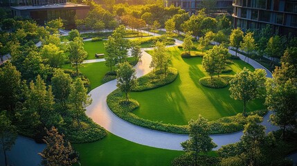 Urban green spaces like parks, gardens, and community forests promoting biodiversity, mental health, and sustainable living by providing green areas in densely populated urban centers