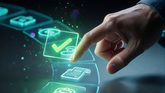 Hands holding a piggy bank with a digital workflow icon, symbolizing approved payments, successful transactions, and organized financial management. Payment approved message