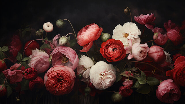 Lush green roses floral pattern ai generated