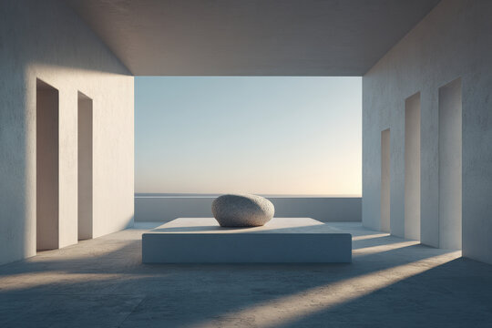 Soccer ball mounted on jet engine-inspired stand surrounded by wind tunnel effects strong directional light and depth cues from