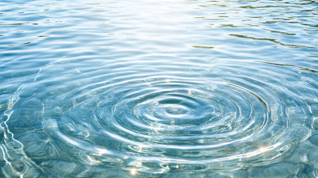 Calm water surface with circular ripples expanding through clear blue fluid, creating serene