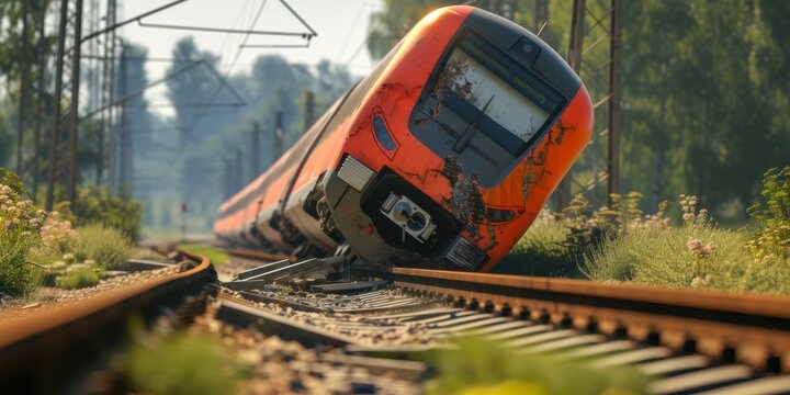 Accident on the railway tracks, the train went off the rails, tragedy, Generative AI.