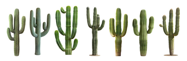 Set of Saguaro Cactus plants Cacti on white transparent background