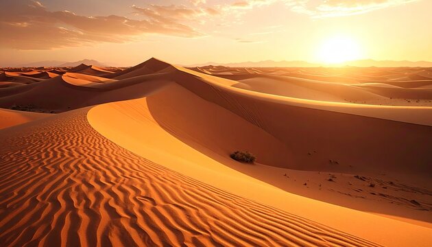 A captivating desert landscape under the warm, golden glow of a setting sun
