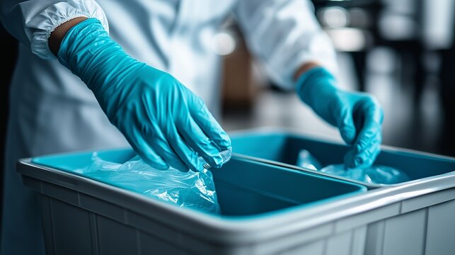 Recycling Bins for a Sustainable Future: A row of colorful recycling bins, each designated for a specific material, standing in a neutral interior.