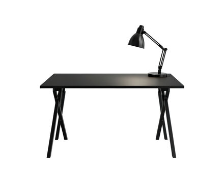 Modern desk with an adjustable lamp, minimalist workspace isolated on transparent background